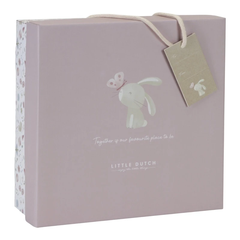Le coffret cadeau Flowers & Butterflies de Little Dutch comprend tout d’abord un doudou tout doux. Il se présente sous la forme d’un carré en mousseline, souple et facile à saisir par de petites mains. Dans un angle, un ravissant papillon coloré est prêt à se laisser câliner et à partager les jeux, les chagrins ou les peurs de votre bébé.