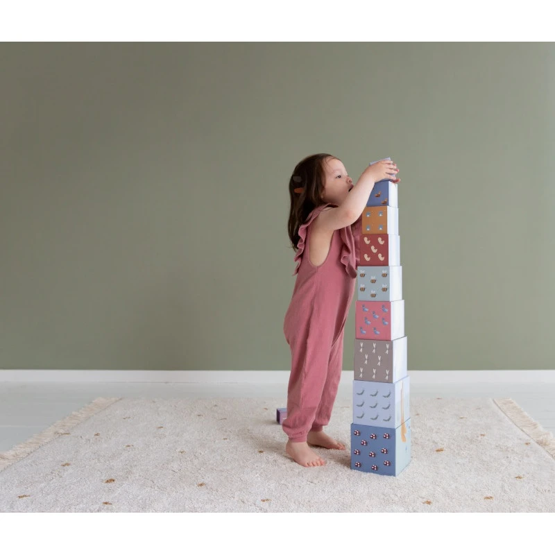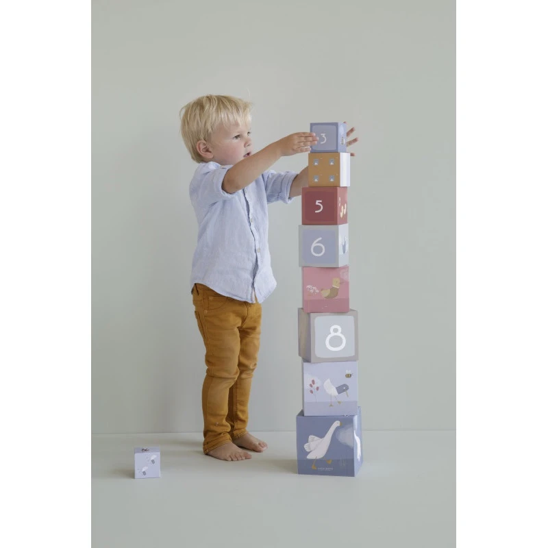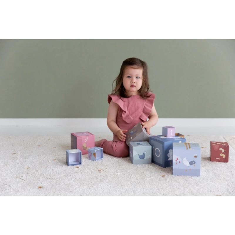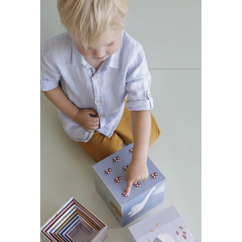 Les 10 cubes Little Goose de Little Dutch sont aussi l’occasion pour vous d’échanger avec votre enfant, en enrichissant son vocabulaire, en l’incitant à s’exprimer, et en stimulant son imagination par le jeu. Puis, quand le temps de tout ranger est venu, les cubes s’encastrent simplement les uns dans les autres : le plus petit mesure 5 cm de côté, le plus grand 14 cm.