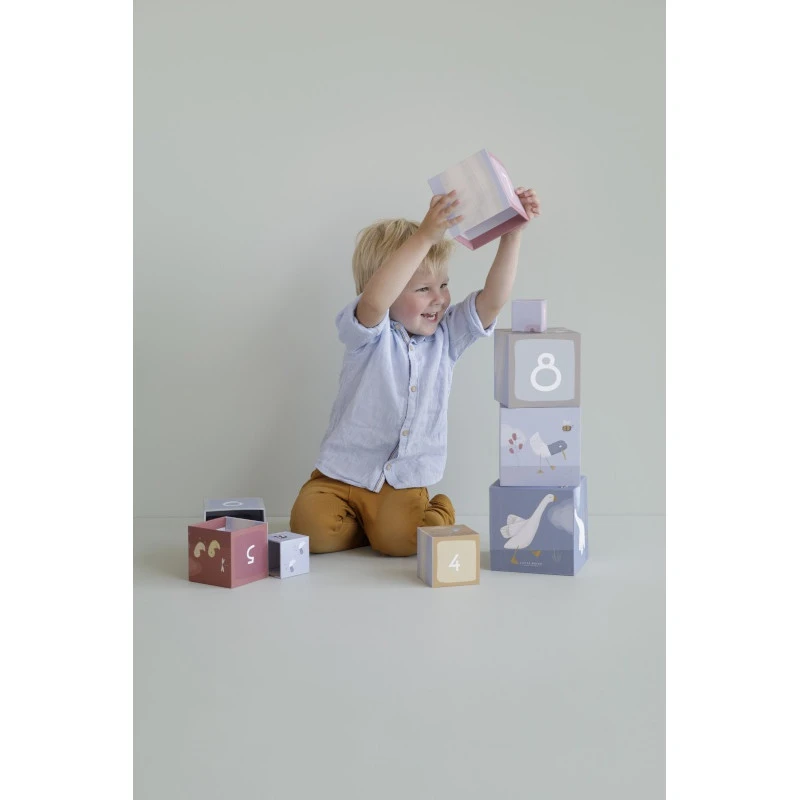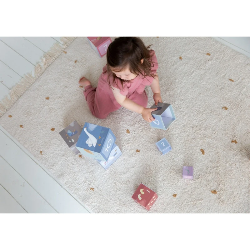Les 10 cubes Little Goose de Little Dutch sont fabriqués en carton solide et résistant aux chocs. Ils proposent à votre bout de chou plein de jeux différents, au gré de ses envies : les empiler pour construire une tour, les aligner du plus grand au plus petit, apprendre à compter, raconter des histoires grâce aux illustrations colorées représentant la belle oie et tous ses amis…