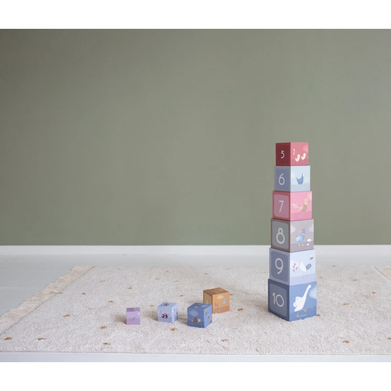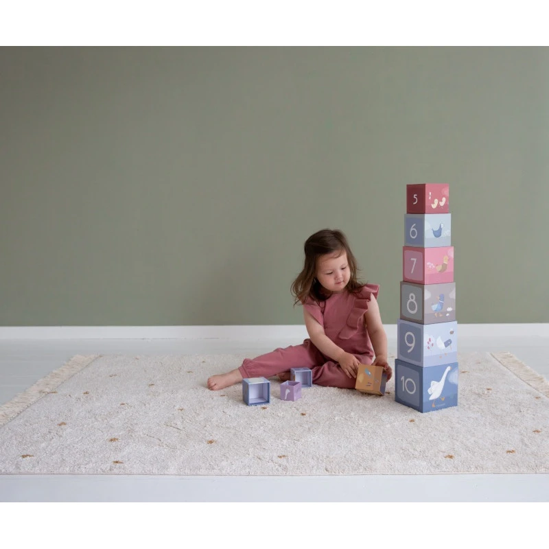 Le thème Little Goose imaginé par Little Dutch vous convie à prendre un peu l’air, à retrouver les plaisirs simples de la campagne, et plus particulièrement, à faire la connaissance de jolies oies blanches. Cet animal intelligent s’est faufilé un peu partout sur la collection Little Goose, sur le linge de lit ou de toilette, sur les éléments de décoration, et sur les jouets d’éveil, dont fait partie cet ensemble de 10 cubes à empiler, qui fera la joie de votre enfant dès 18 mois.