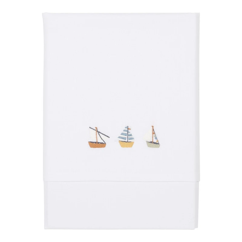 La collection Sailors Bay imaginée par Little Dutch rappelle l’ambiance animée d’un bord de mer, avec ses bateaux au large, son phare et ses oiseaux qui attendent impatiemment le retour des pêcheurs. Cette large gamme compte tout ce qu’il faut pour décorer la chambre de votre bébé, pour équiper son lit, pour l’éveiller, pour accompagner chaque instant de sa journée… Et elle vous propose ce très beau drap plat brodé pour berceau, couffin, nacelle, cododo…