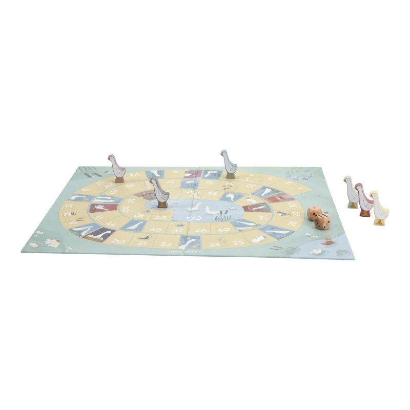 Le jeu de l’oie Little Goose imaginé par Little Dutch entraîne votre enfant à travers différentes scènes champêtres, sur le chemin de de mare. Petit rappel des règles : vous lancez les dés, vous avancez votre pion du nombre de cases indiquées, mais attention, certaines comportent des pièges. Le joueur qui arrive en premier au bout des 63 cases a gagné !