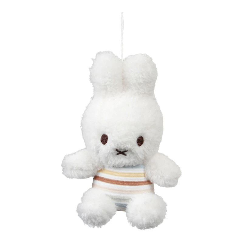 Le mobile Vintage Sunny Stripes dispose d’une structure qui s’accroche simplement au bord de la plupart des lits à barreaux, et qui supporte une boîte à musique mécanique ainsi que 5 ravissantes suspensions : la belle Miffy au centre, entourée d’un cerf-volant, d’un soleil, d’une balle et d’un nuage. En remontant le mécanisme, la mélodie se met en route et entraîne les 5 jouets dans une ronde joyeuse. Quel spectacle fascinant pour les yeux et les oreilles de votre nourrisson !