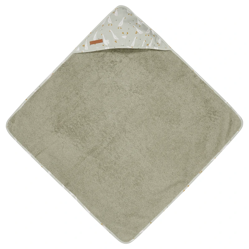 Le thème Little Goose imaginé par Little Dutch vous embarque pour une petite virée à la campagne, à la découverte de ses habitants et plus spécialement, des oies blanches. Cet animal, symbole de prudence et d’intelligence, est représenté sur chaque élément de la collection Little Goose, et se retrouve notamment sur la capuche de cette ravissante cape de bain, conçue pour envelopper bébé de douceur et de chaleur dès sa sortie de l’eau.